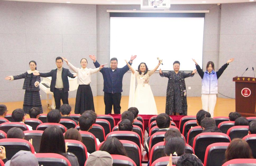 本次活动的核心环节,是由教育学院组织员“党群驿站”李爱丽副教授主讲的民族团结教育“开学第一课”暨声乐表演公开课《弘扬民族美 放歌新时代》。三部由李老师原创编曲、张芸芸老师音乐制作的音诗画作品,以经典红色歌曲与多民族代表性民歌为脉络,引导学生在音乐情绪中感受中华民族的奋斗历程,在诵读中体悟各民族文化的交融共生,以及对未来教学实践过程的青春愿景。