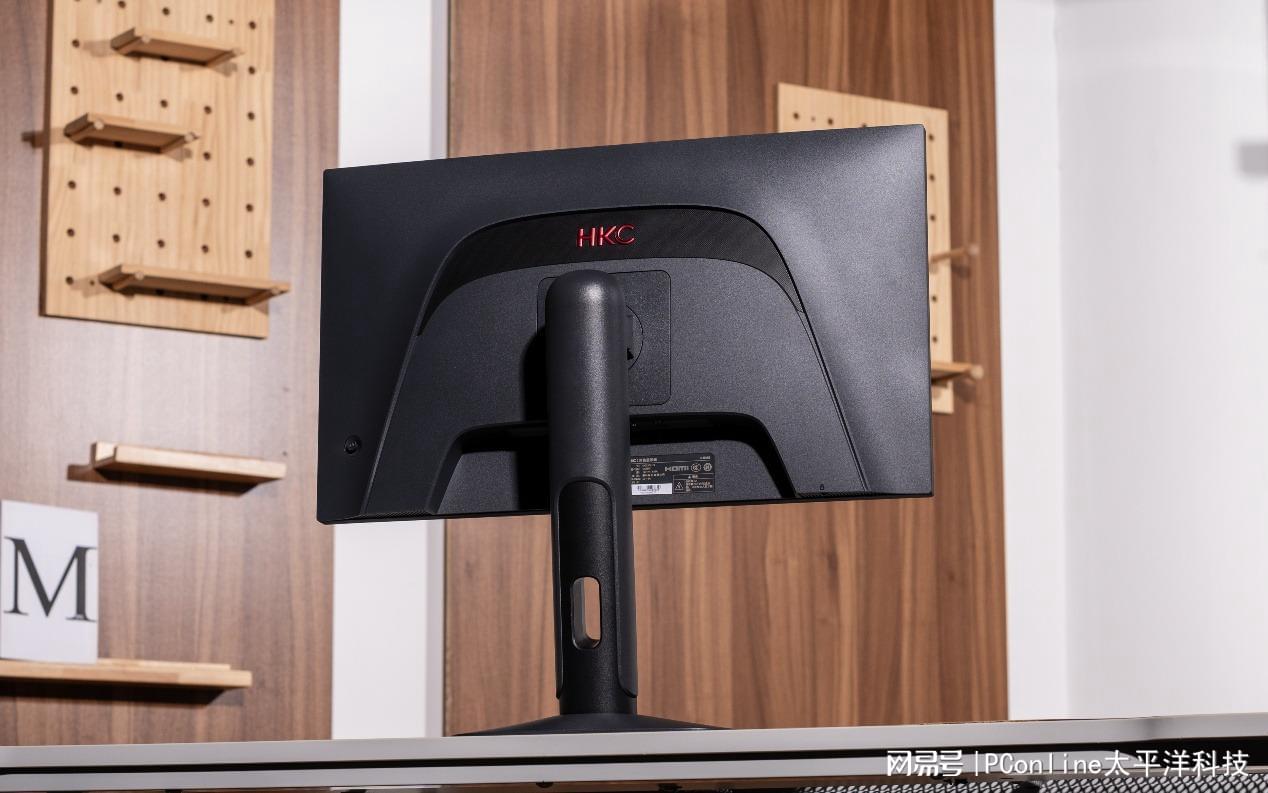 过去的经典“背甲”纹理虽然得以保留,但被巧妙地浓缩并融入到显示器背部上方区域,整体观感更为内敛和精致。这种设计上的演变,让HKC UG25EF在保持电竞风格的同时,也更具现代感,不再像纯粹的“战斗装备”,能更好地融入各种桌面环境。